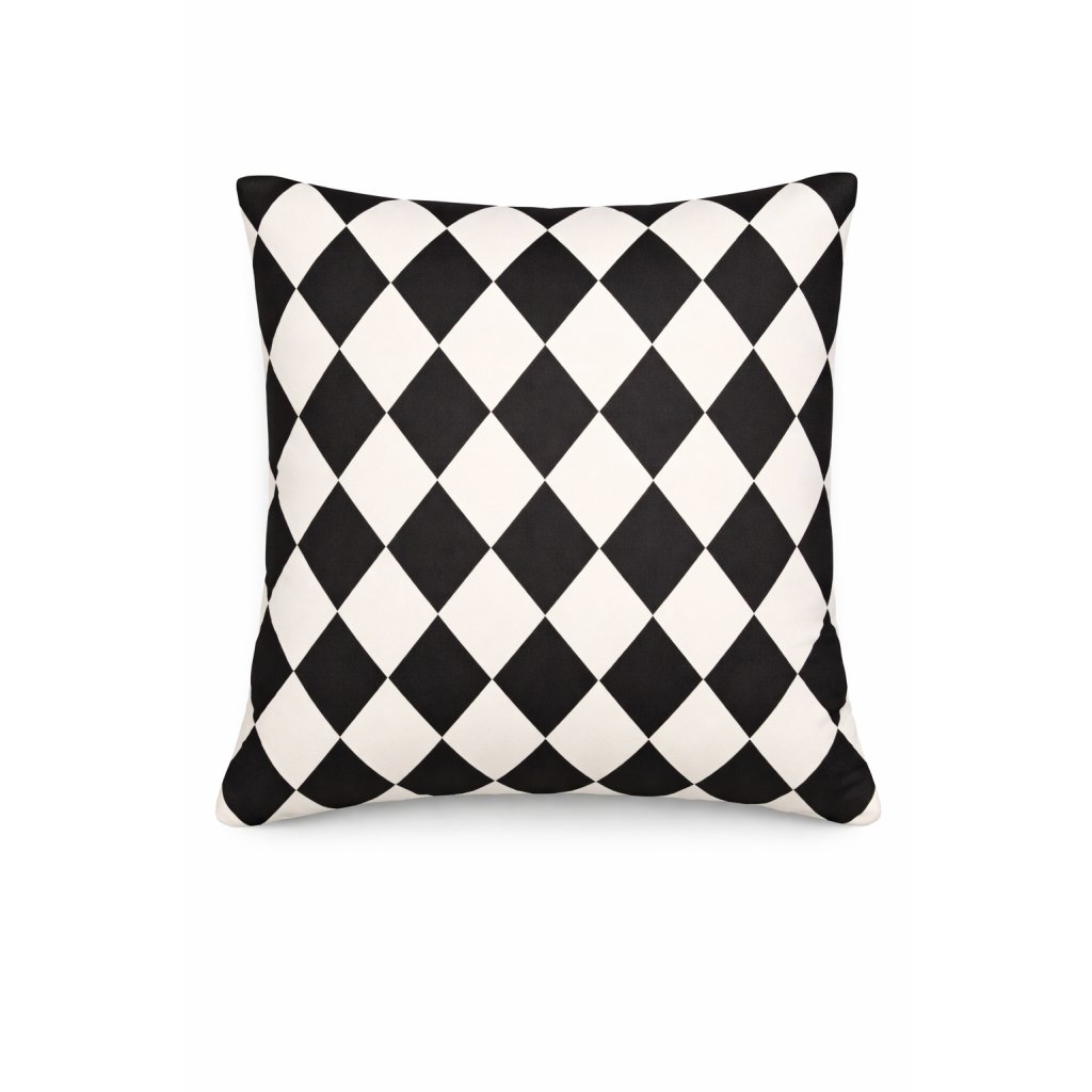 Dekorační polštář Harlekýn je výrazný kousek, který funguje v moderním, eklektickém i vintage interiéru. Kontrastní geometrický motiv opticky „zvedne“ celý prostor a snadno se kombinuje s jednobarevnými textiliemi i dalšími vzory.