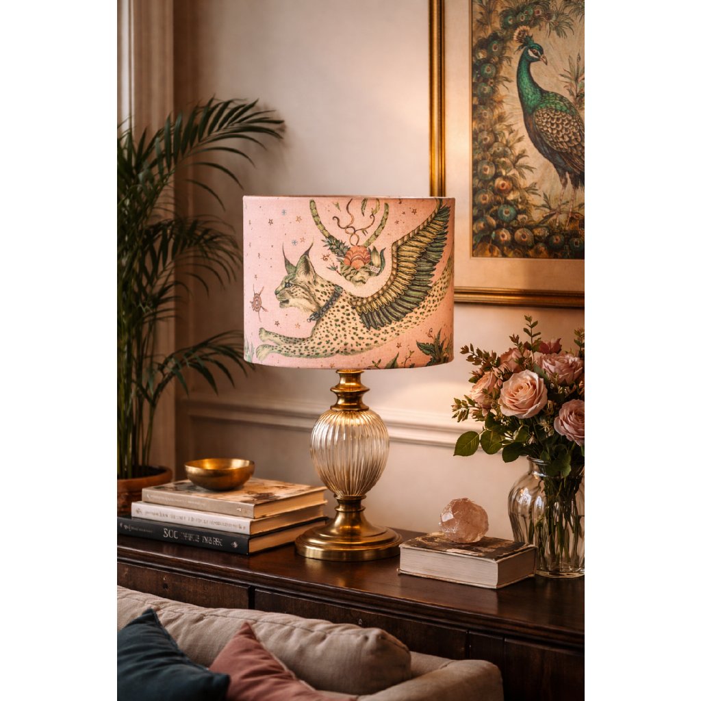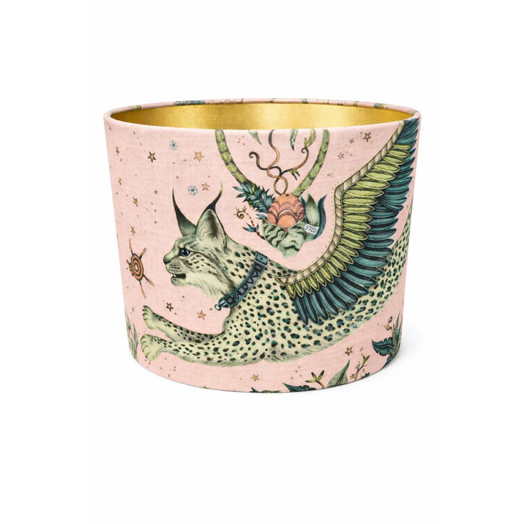 Pastelově růžový podklad krásně kontrastuje se zlatým vnitřkem, jenž při rozsvícení vytváří teplé, útulné a měkké světlo. Díky tomu stínidlo působí nejen dekorativně, ale i velmi příjemně v interiéru.