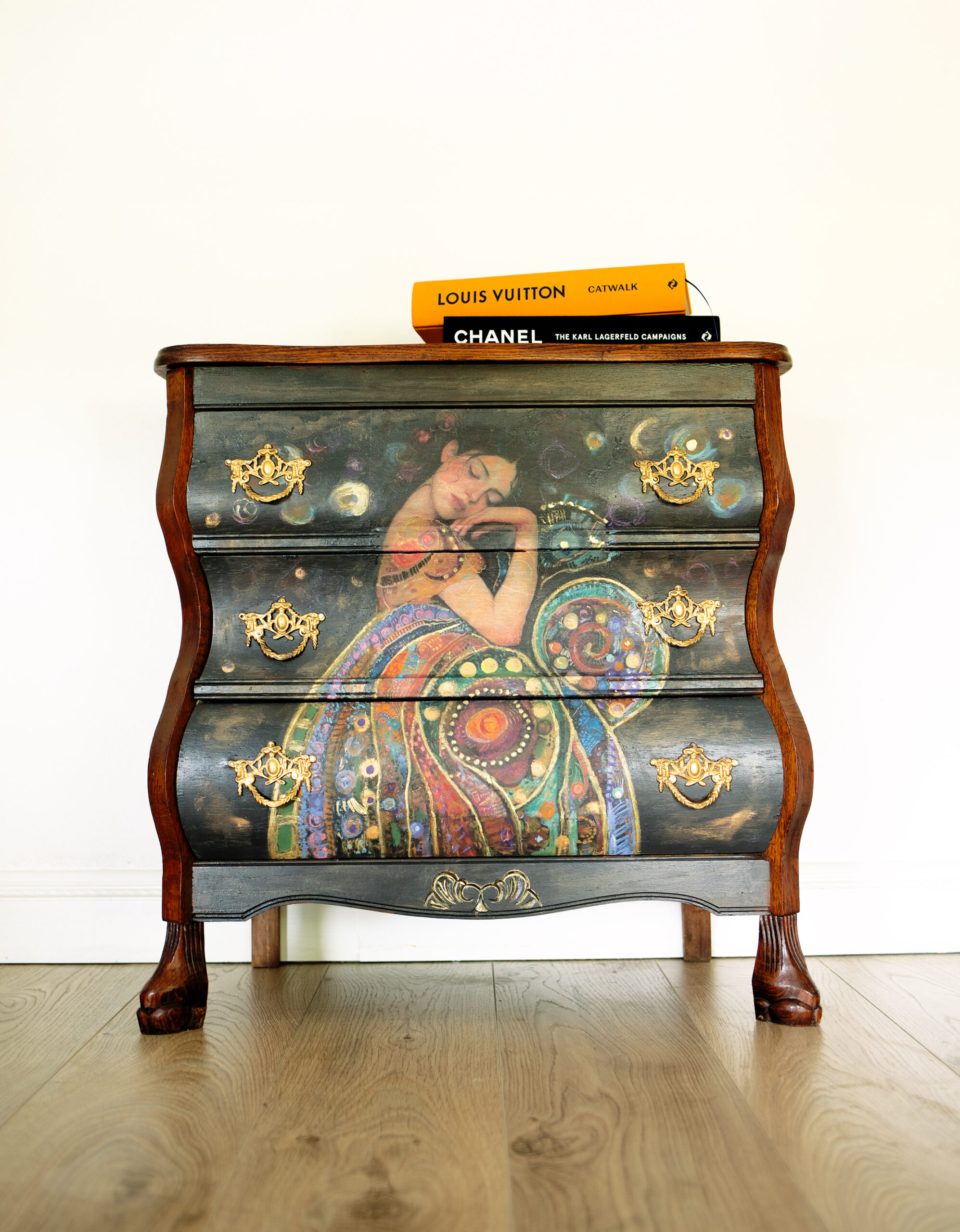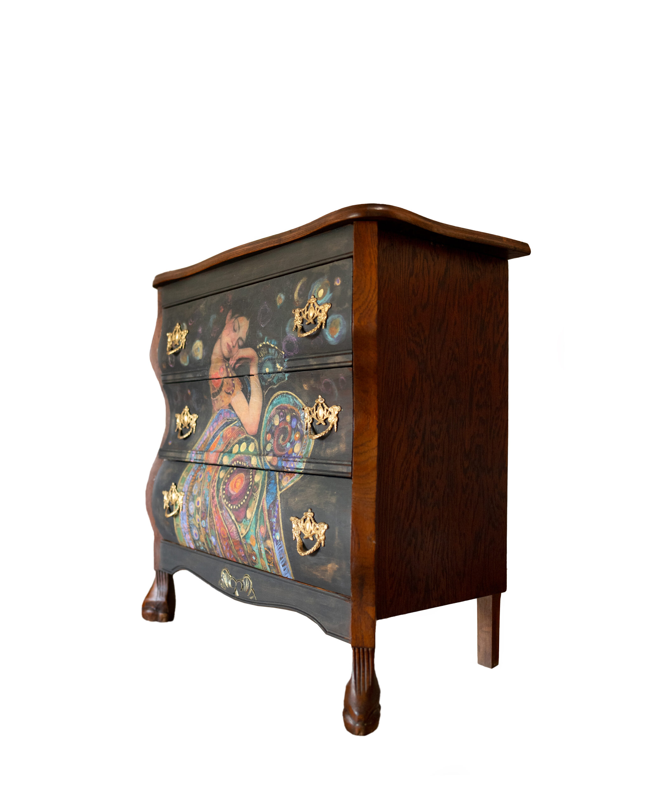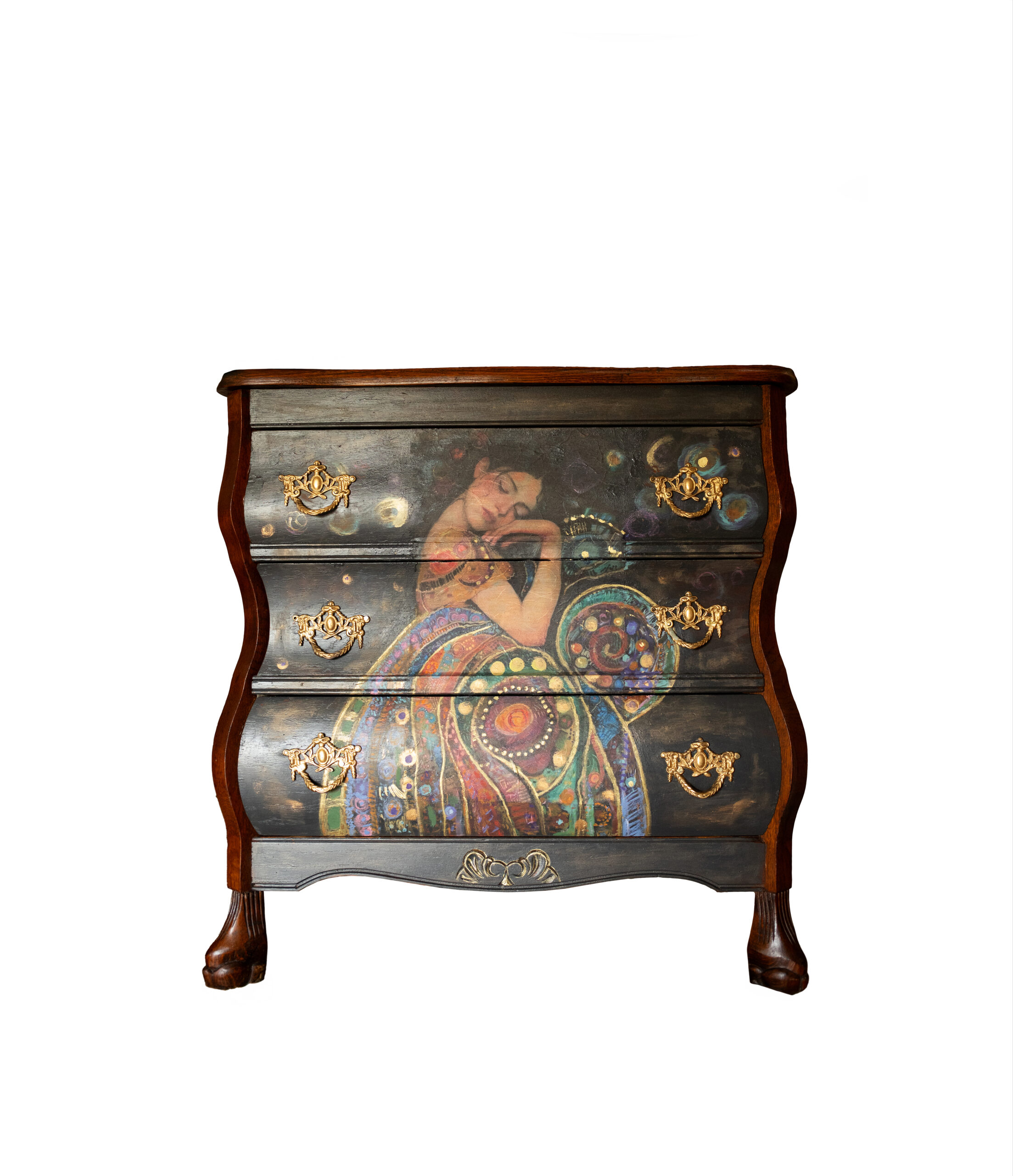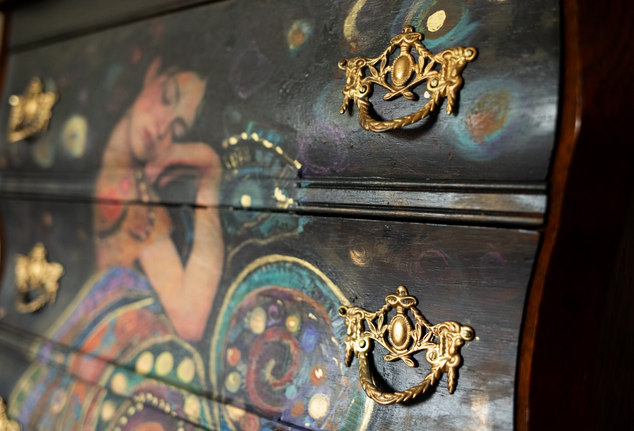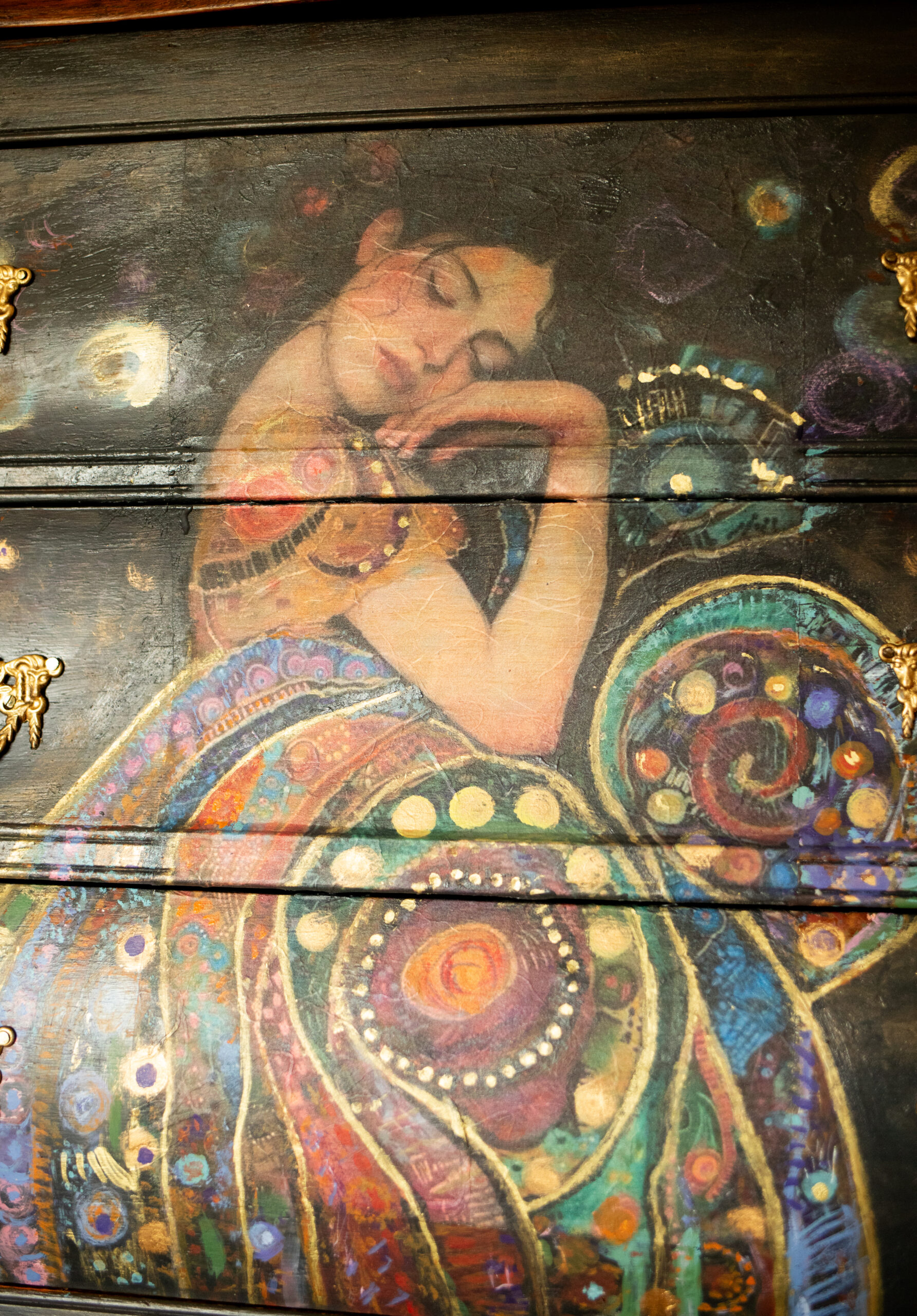 Ručně malovaná komoda s motivem „Sen“ – jedinečný solitér pro váš interiér.